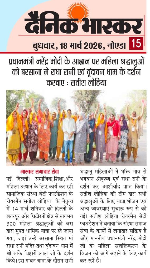 बेटी फाउंडेशन के सामूहिक विवाह आयोजन मे 16 नवंबर 2025 को आकर नवदंपतियों को आशीर्वाद दें। नई जिंदगी की शुरुआत पर ढेर सारी शुभकामनाएं और आशीर्वाद देंं।